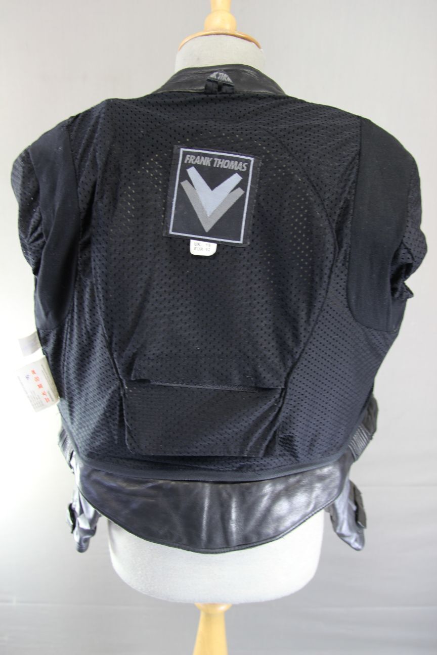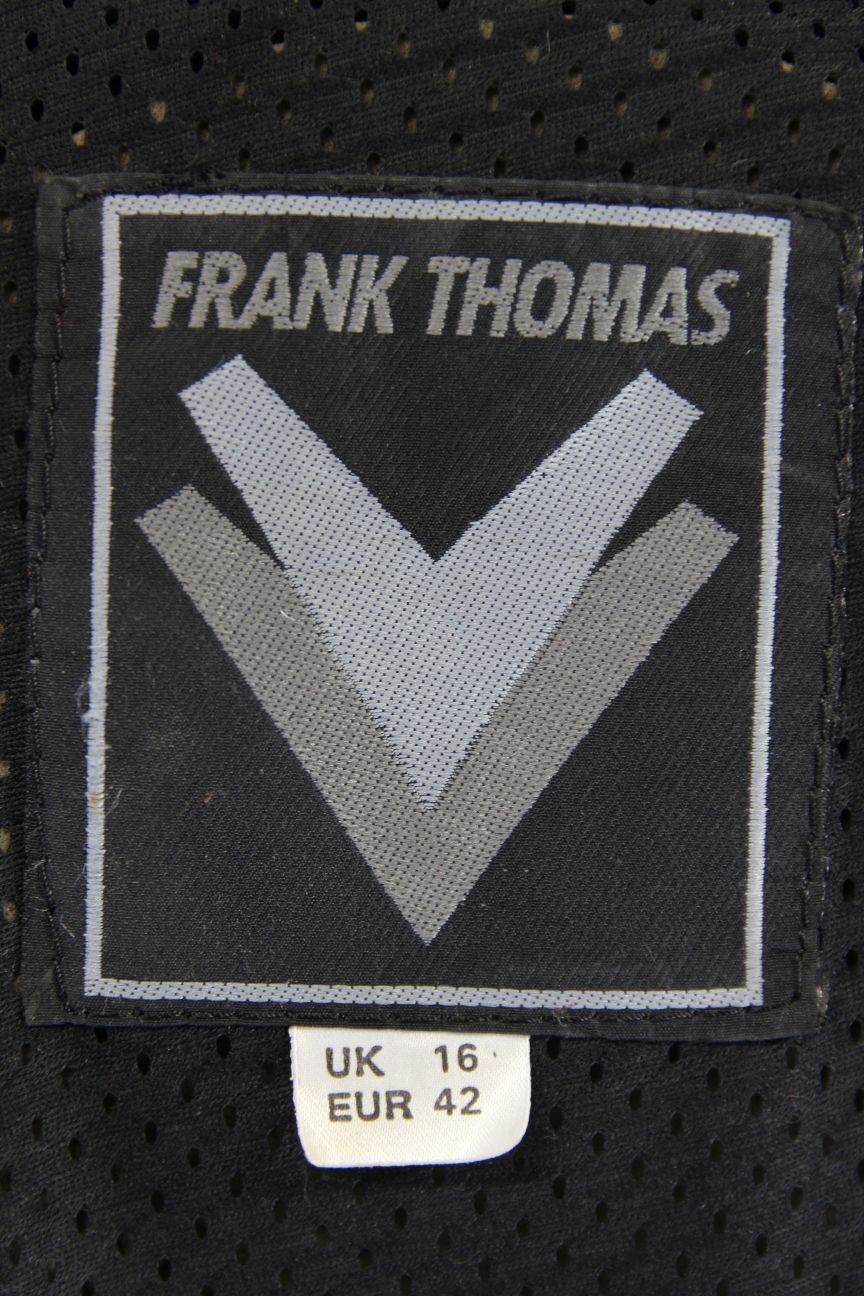 FRANK THOMAS MONZA BROWN & SILVER LEATHER BIKER JACKET + BACK PROTECTOR: SIZE 16