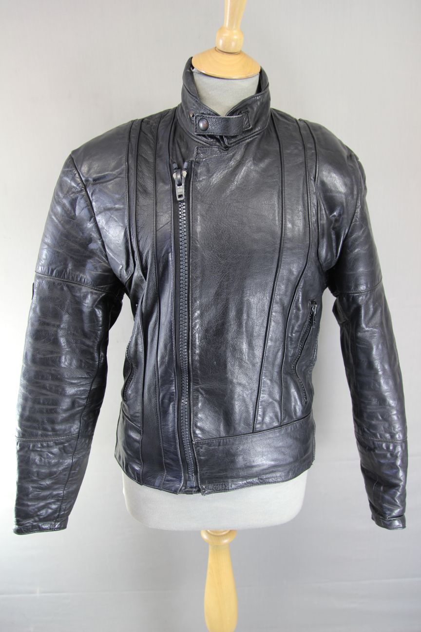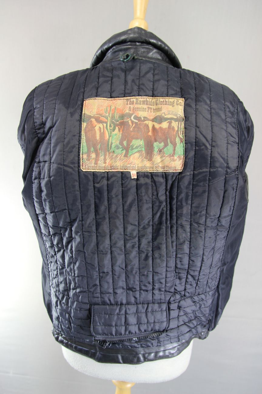 FRANK THOMAS RAWHIDE BLACK STEERHIDE LEATHER BIKER JACKET 34-36 INCH