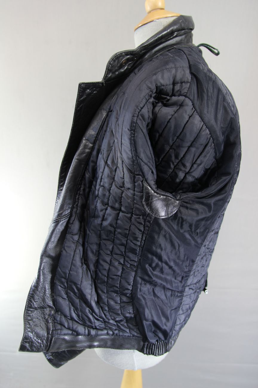 A SUPERB QUALITY LEADING BRAND BLACK STEERHIDE LEATHER BIKER JACKET.