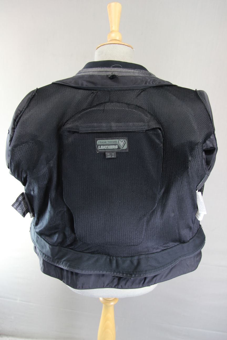 FRANK THOMAS TITANIUM BLACK LEATHER BIKER JACKET + REMOVABLE CE ARMOUR: SIZE 14