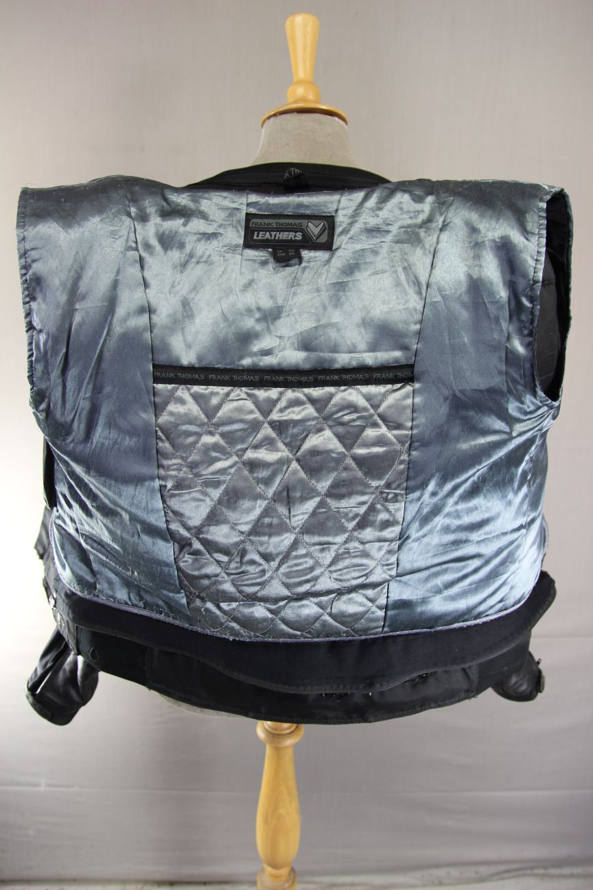 FRANK THOMAS XTI TITANIUM BLACK LEATHER BIKER JKT + CE ARMOUR/THERMAL LINING 40"