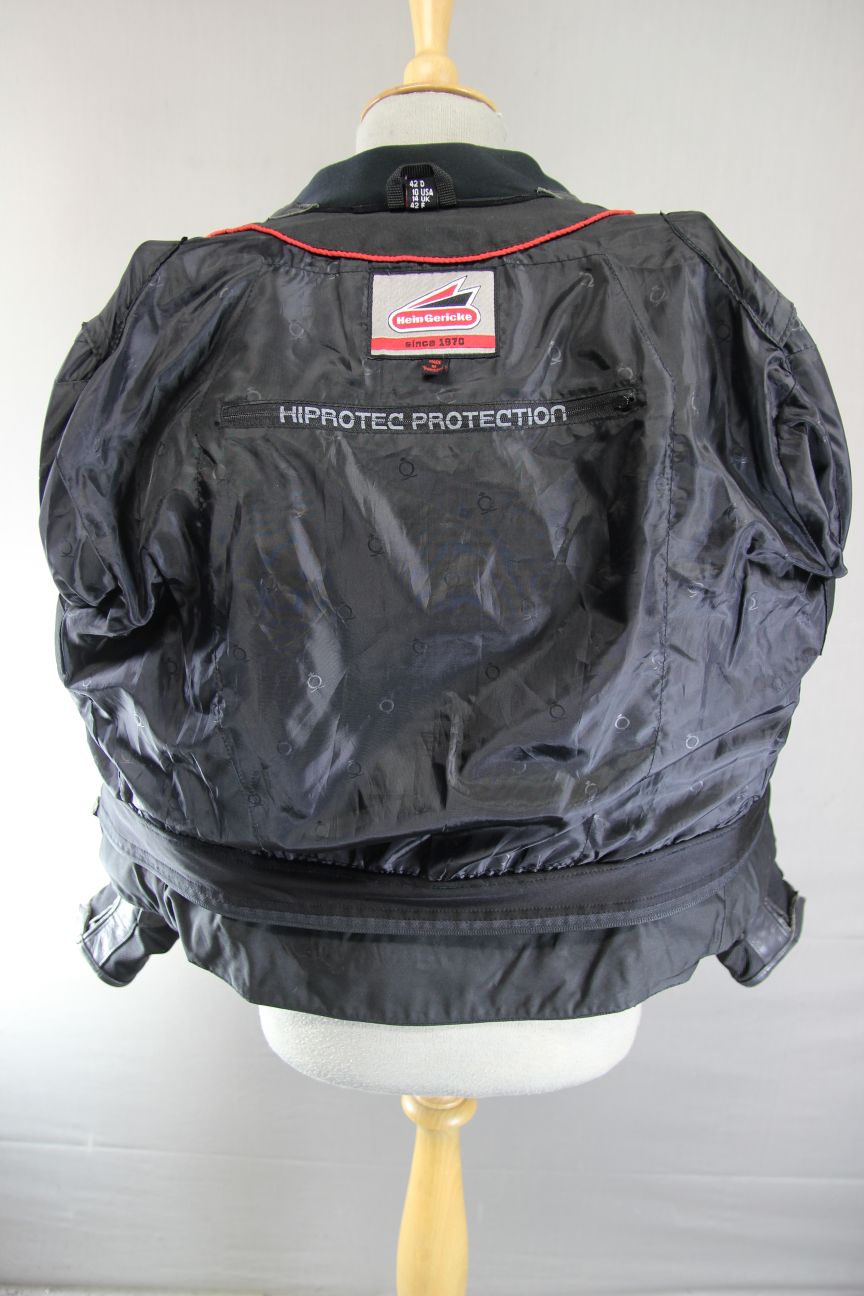 HEIN GERICKE BLACK & WHITE LEATHER & TEXTILE BIKER JACKET WITH CE ARMOUR SIZE 14