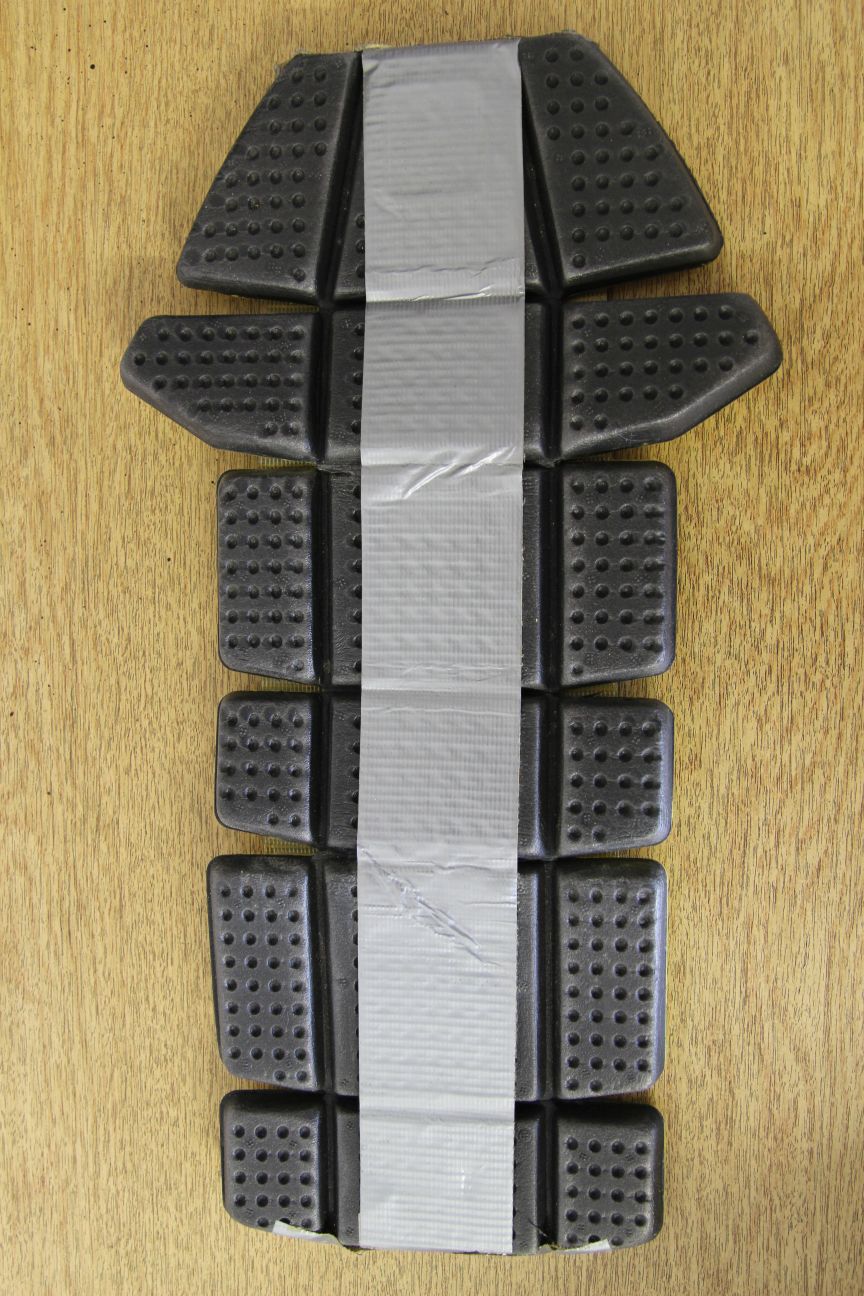 The jacket comes with CE tested Hiprotec Sports armour at the shoulders and elbows/forearms (attached to the inside of the lining with Hein Gericke Snap System fasteners). There is a zipped pocket on the lining with a CE back protector. The back protector has been taped up (see photo) but is still usable. There is an opening at the back of the pocket to access the shoulder and elbow/forearm armour. There is built in padding at the shoulders and elbows/forearms as well, and there are padded panels built into the jacket at the front, back of the waist and at the sides.