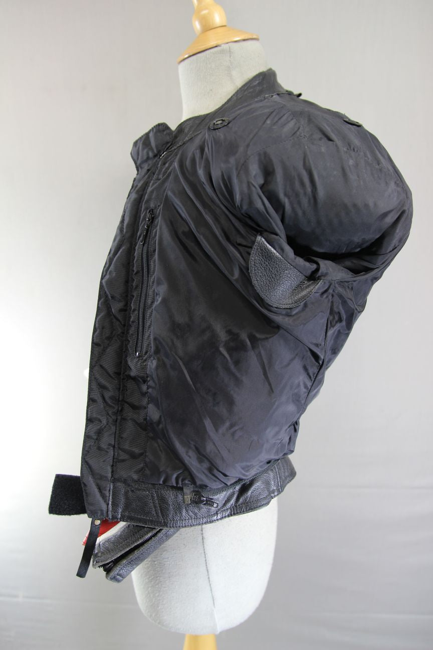 A SUPERB QUALITY LEADING BRAND LEATHER BIKER JACKET WITH FULL SET OF REMOVABLE CE TESTED HIPROTEC ARMOUR.