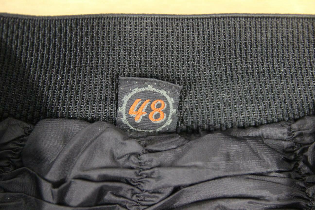 The trousers have a black polyamide lining. There is a tear along the central seam of the lining, as pictured.