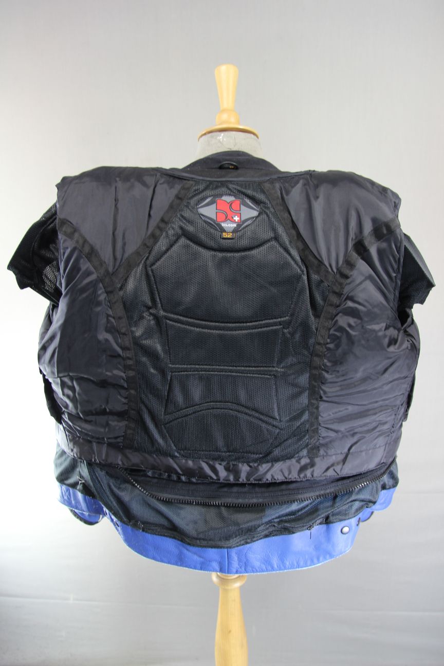 IXS 79 BLUE & WHITE LEATHER BIKER JACKET WITH CE ARMOUR & THERMAL LINING 42 IN