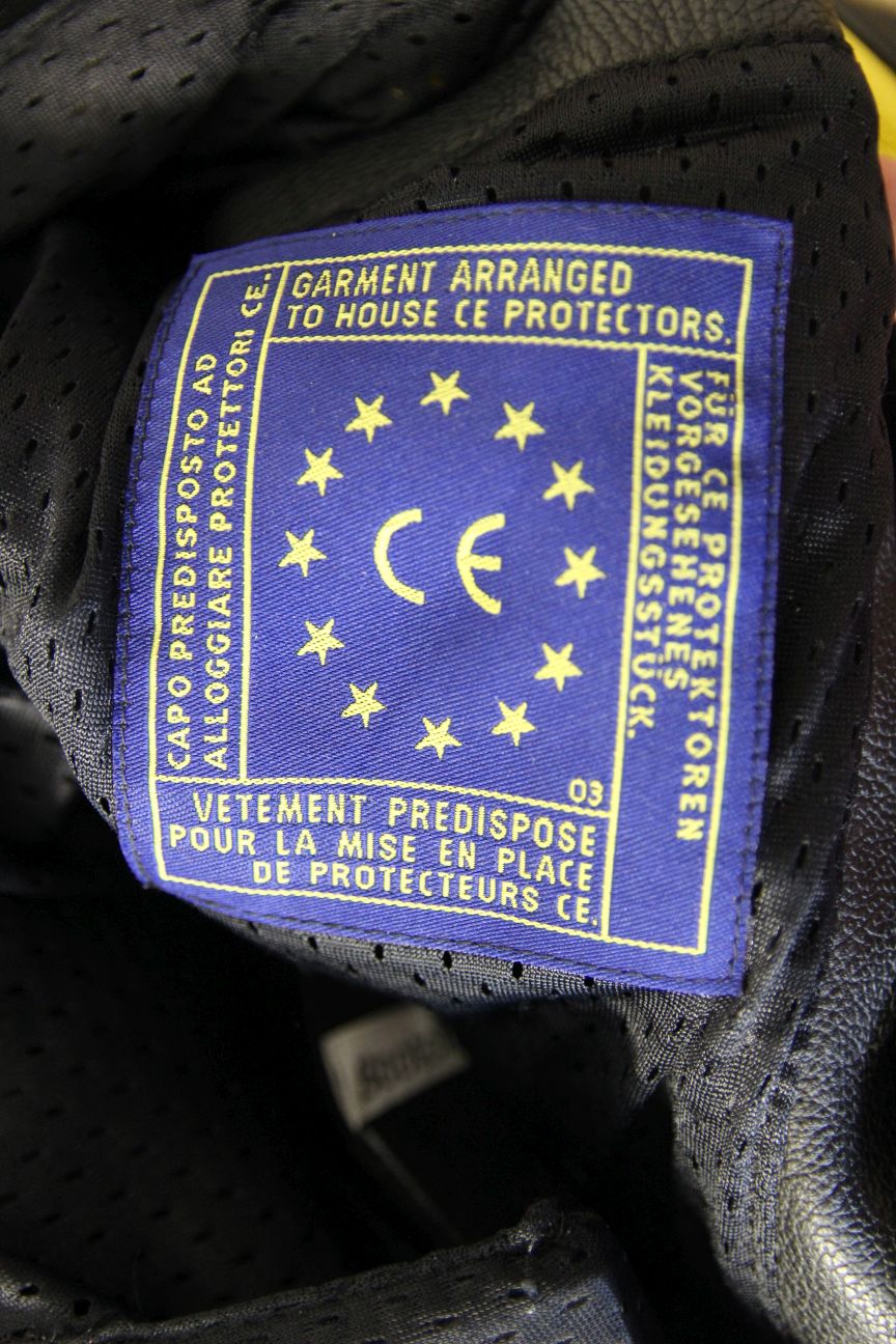 The suit comes with removable shoulder, elbow/forearm & knee/shin CE armour. The shoulder & elbow armour is held in velcro fastened 'pockets' on the lining and the knee/shin armour in pockets on the outside of the leather. There are also pockets on the lining with removable back and hip protectors (these are the padded type, not CE armour). There are padded panels built into the back of the jacket.