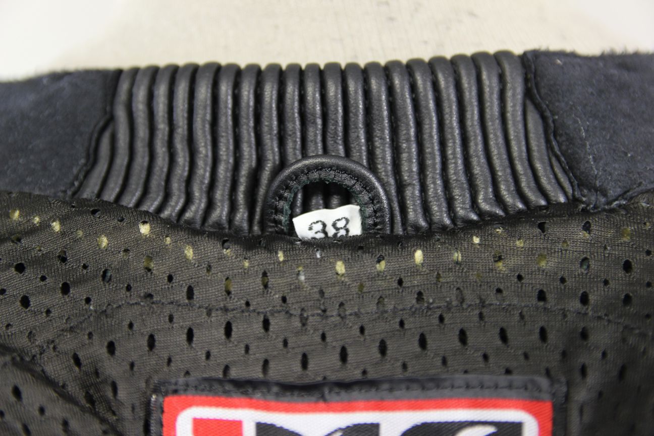 The leather is black and 2 shades of silver/grey, with Scotchlite 3M reflective trim. There is a breathable black textile material on the sleeves at the inside of the elbows.