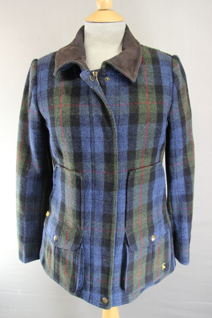 JOULES NAVY & KHAKI LADIES PURE WOOL COUNTRY SPORTS CHECK TWEED FIELDCOAT