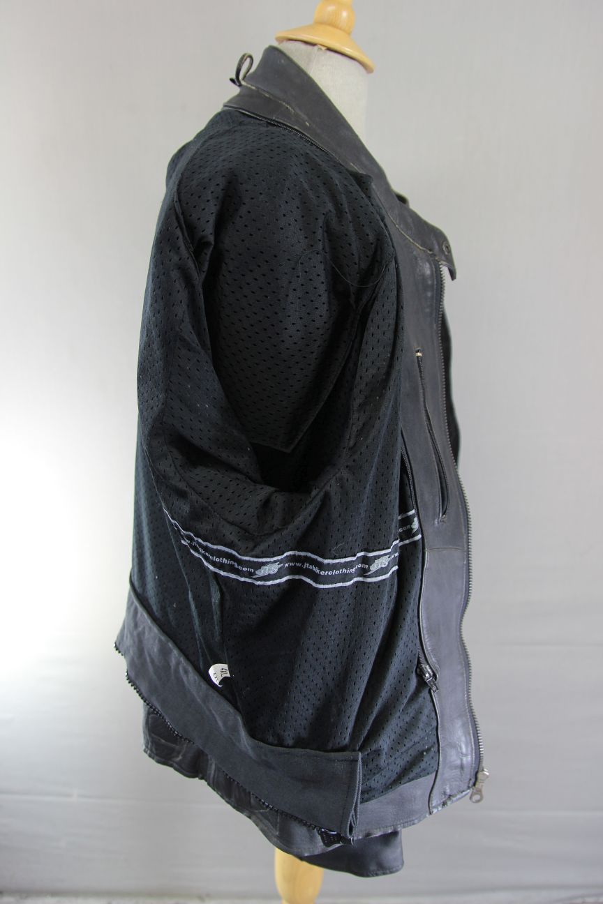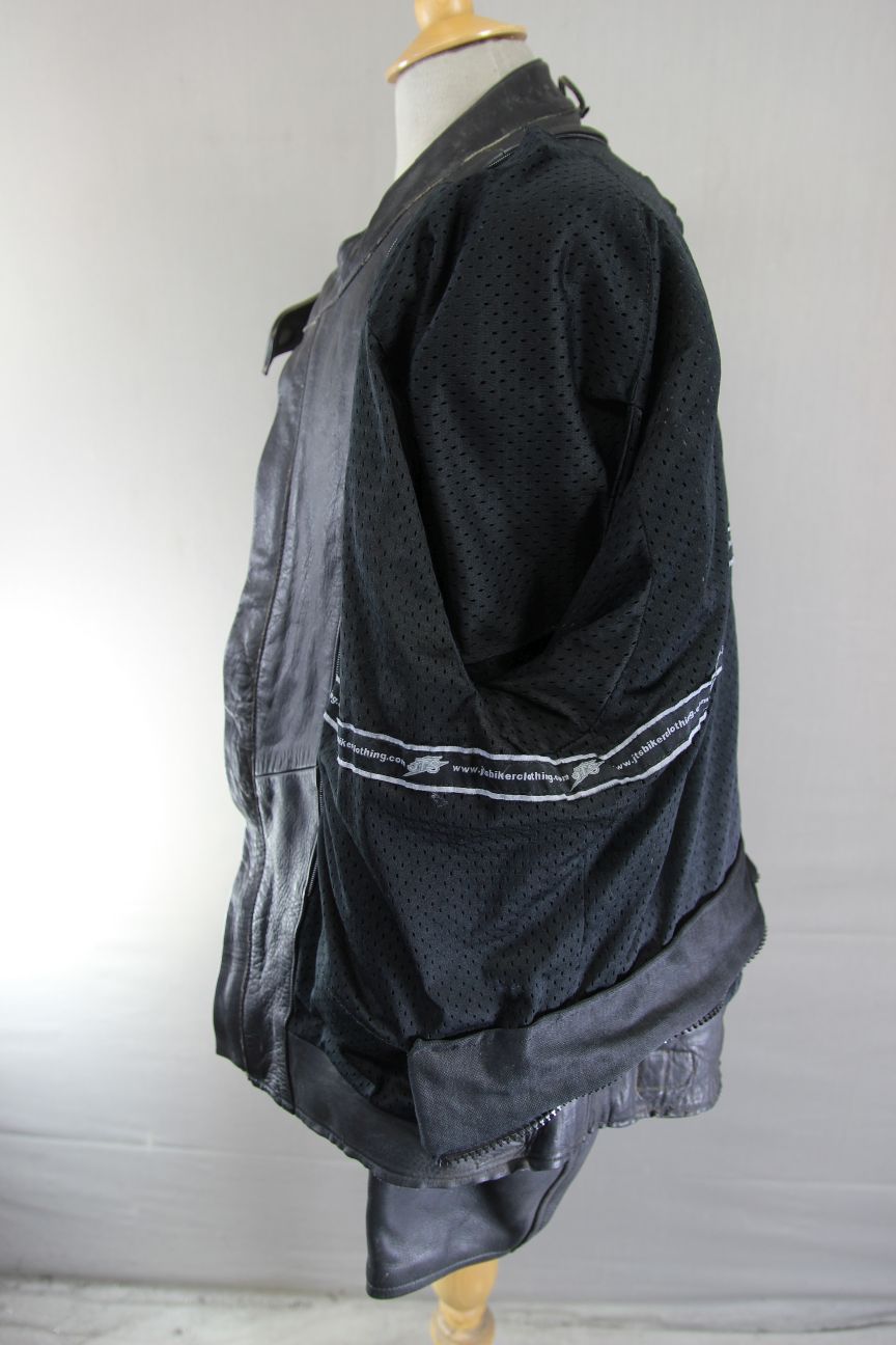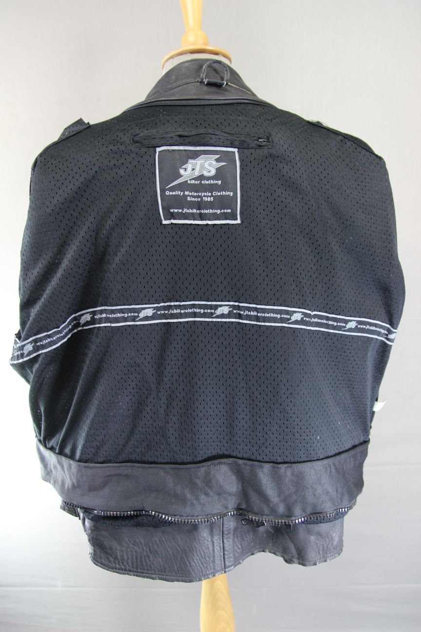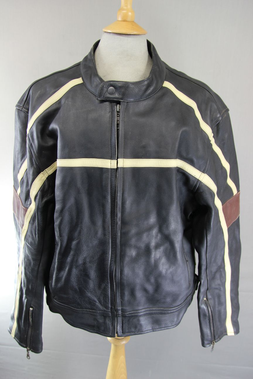 JTS BLACK, BROWN & CREAM LEATHER BIKER JACKET 46-48 INCH