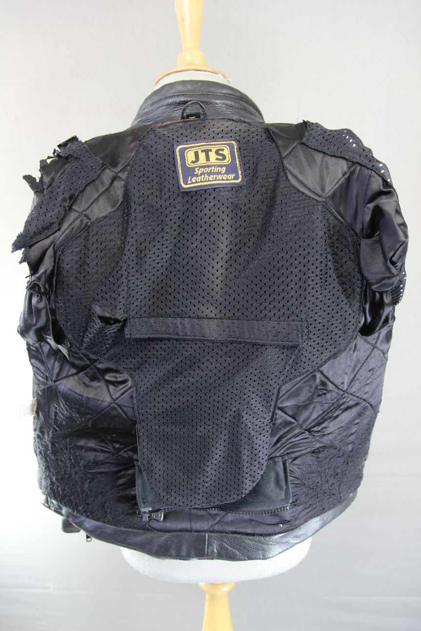 JTS BLACK LEATHER BIKER JACKET WITH REMOVABLE PROTECTORS 36-38 INCH