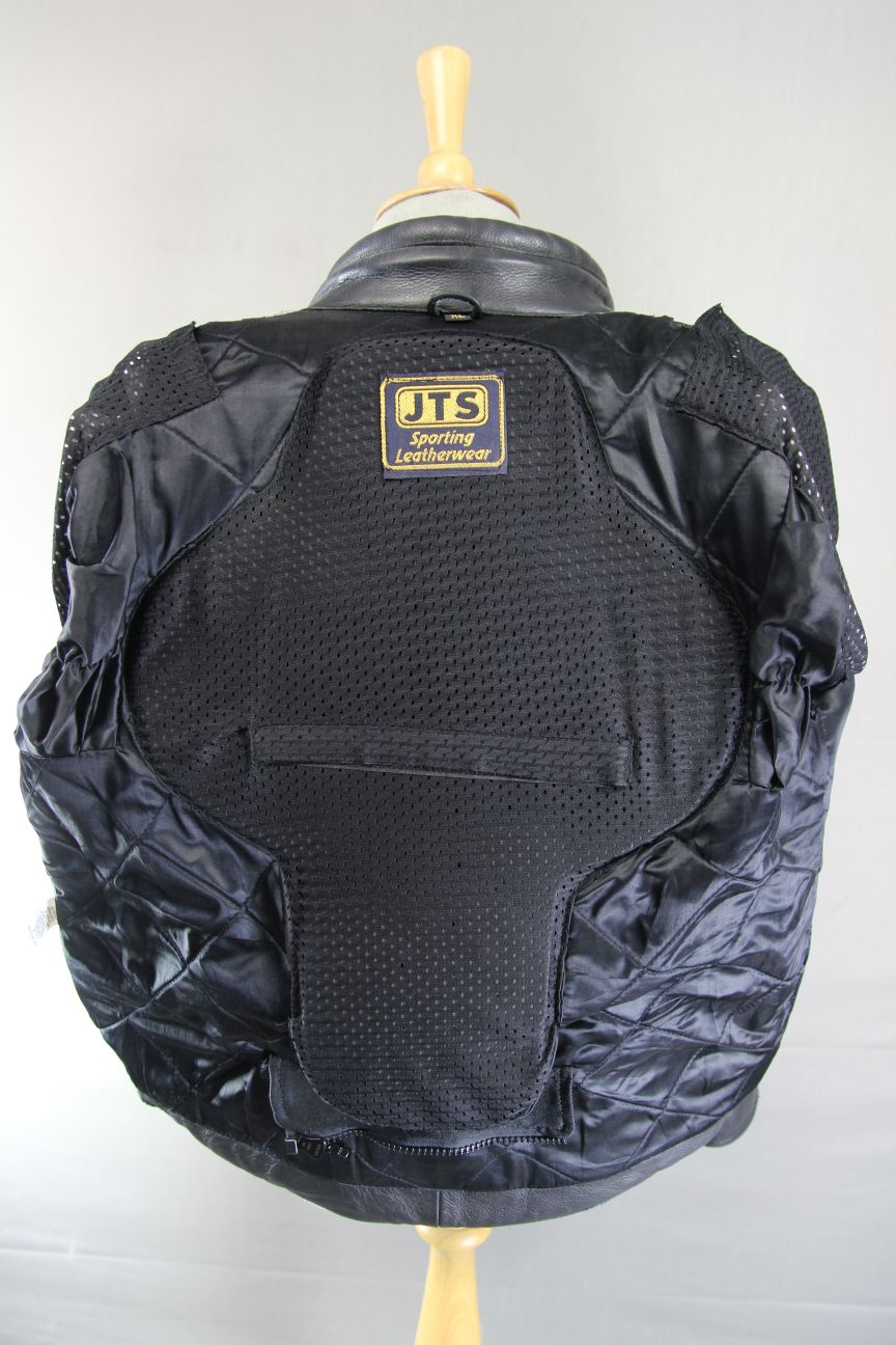 JTS BLACK LEATHER BIKER JACKET WITH REMOVABLE BACK, SHOULDER & ELBOW PROTECTORS
