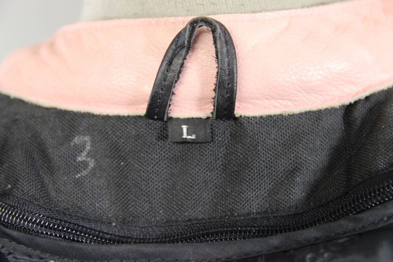 A SUPERB QUALITY WHITE & PINK LEATHER BIKER JACKET WITH FULL SET OF CE ARMOUR & ADDITIONAL QUILTED LINER.