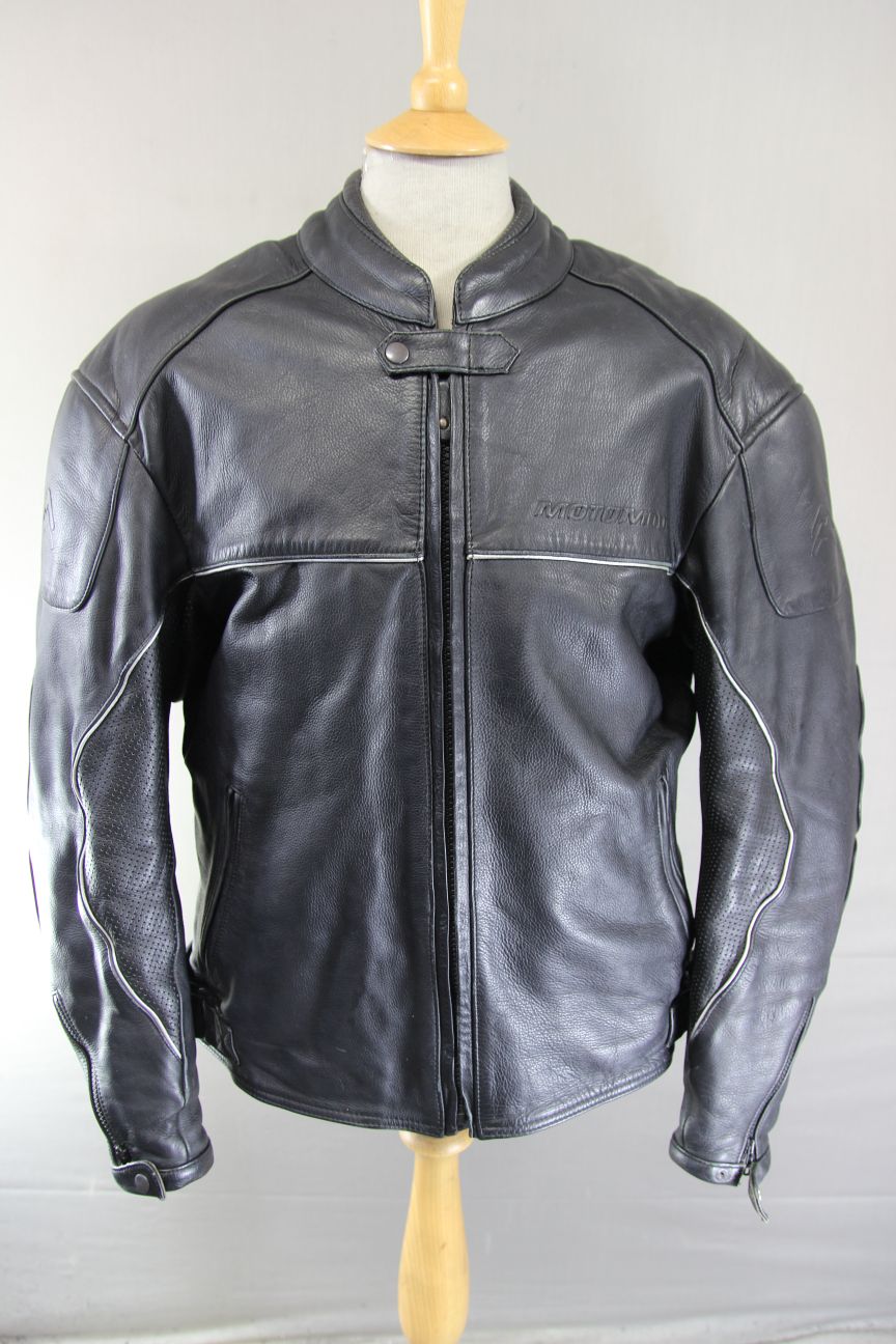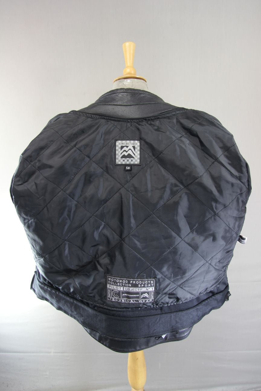 MOTOMOD BLACK LEATHER BIKER JACKET WITH CE ARMOUR & ADDITIONAL LINING 46"