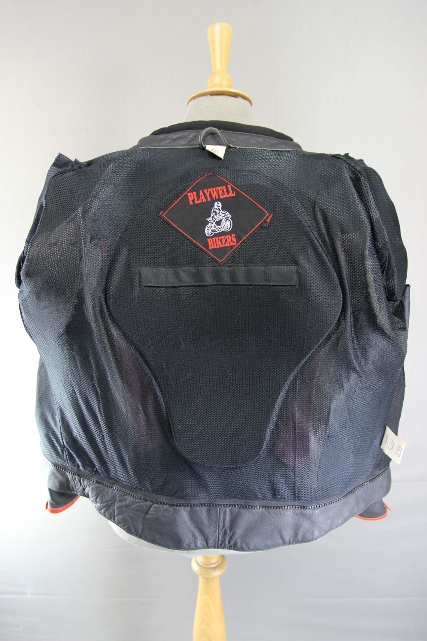PLAYWELL BLACK, RED & WHITE LEATHER BIKER JACKET WITH REMOVABLE CE ARMOUR 40 IN