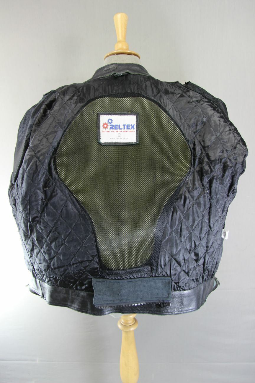 RELTEX BLACK, GREY, WHITE & SILVER LEATHER BIKER JACKET WITH CE ARMOUR 42 INCH