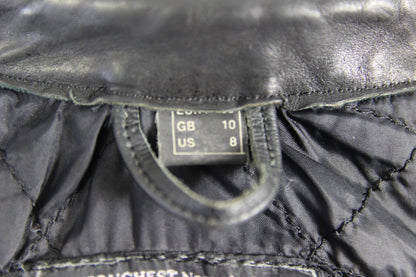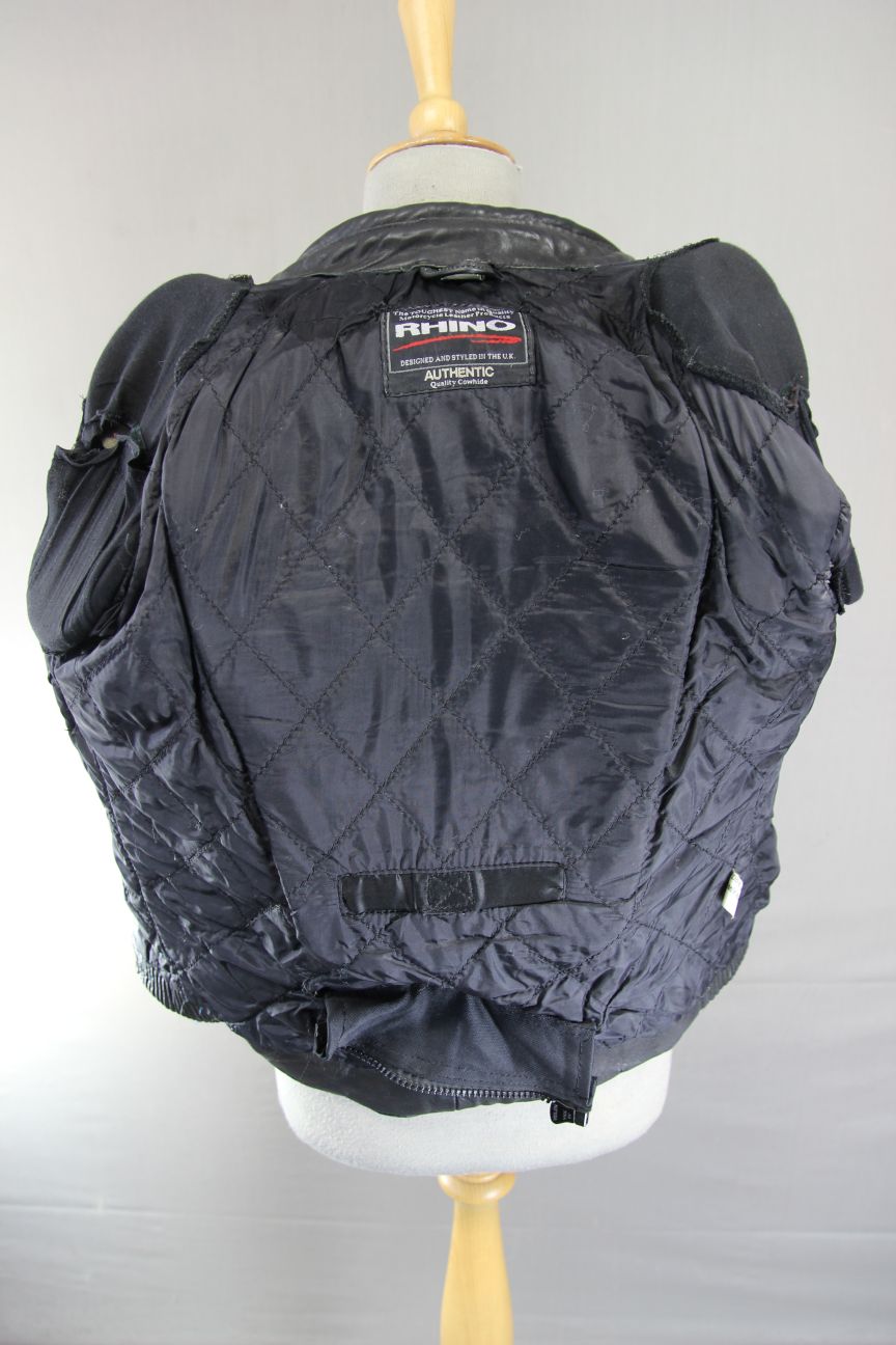 RHINO BRITISH DESIGNED BLACK COWHIDE LEATHER BIKER JACKET + PROTECTORS: SIZE 10