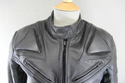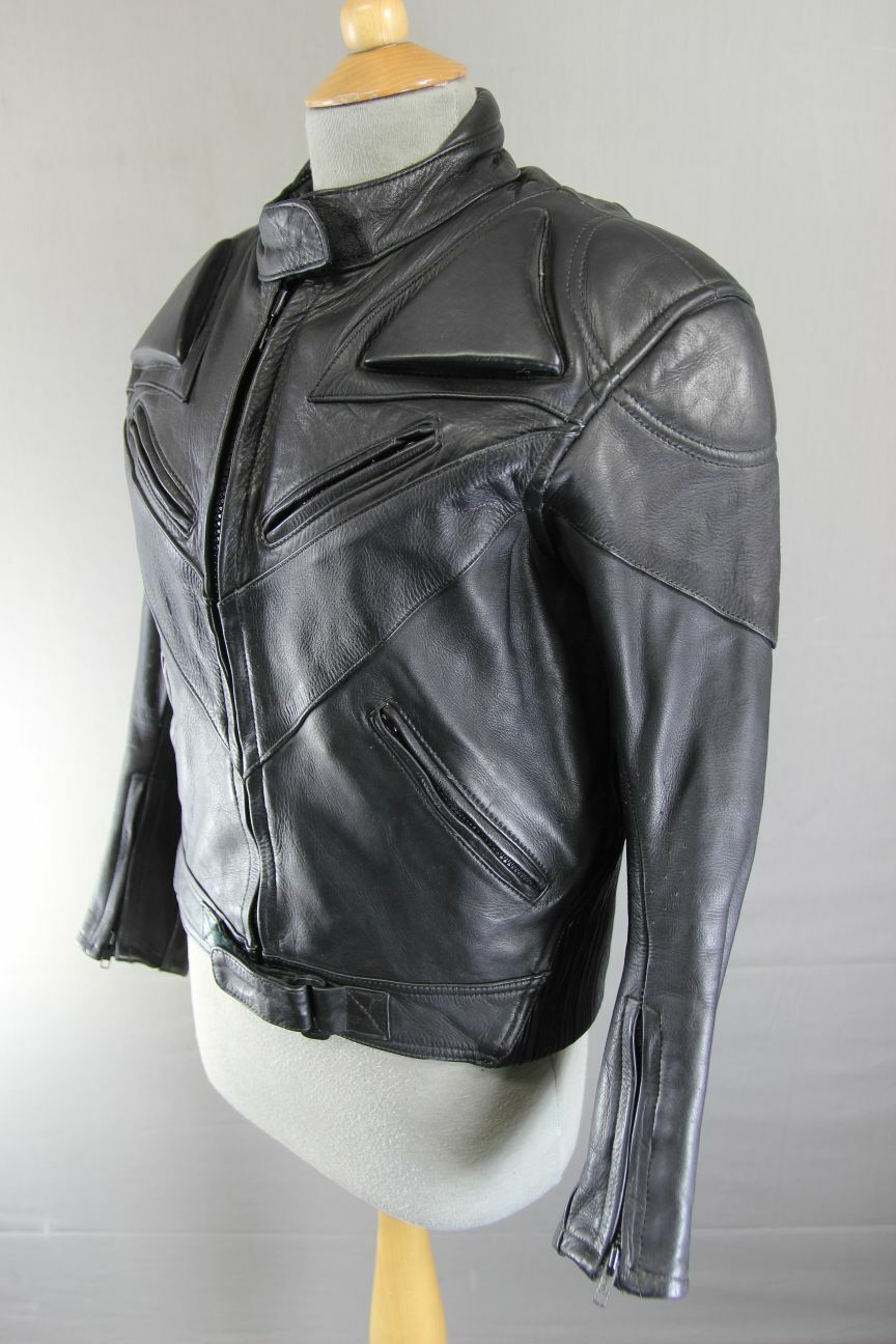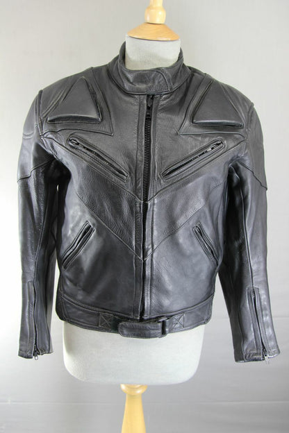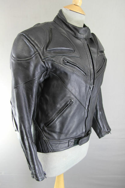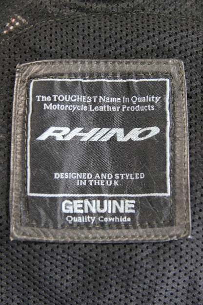RHINO BRITISH DESIGNED & STYLED BLACK COWHIDE LEATHER BIKER JACKET: SIZE 14