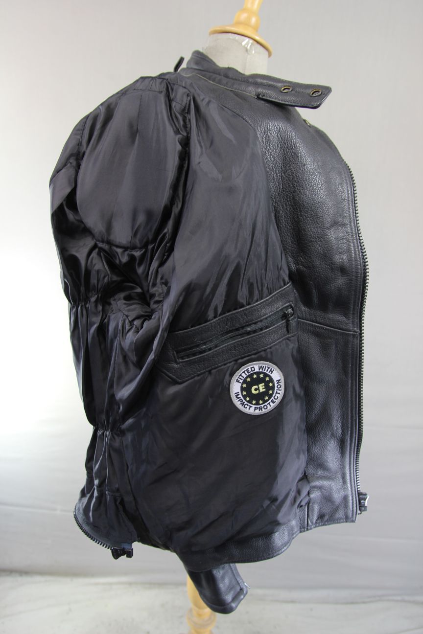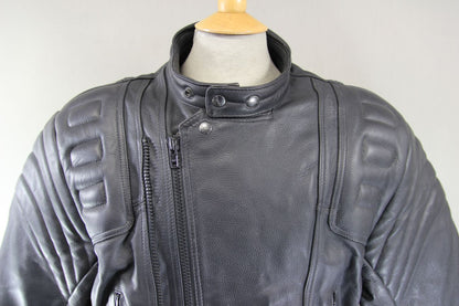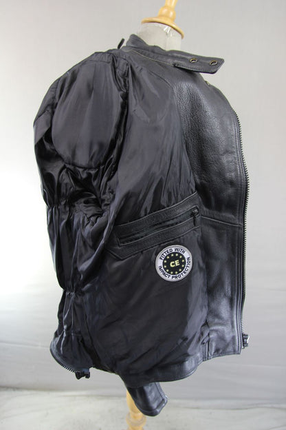 RICHA BLACK LEATHER BIKER JACKET WITH BACK, SHOULDER & ELBOW CE ARMOUR 46-48 IN