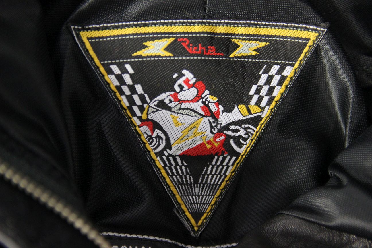 RICHA BLACK LEATHER BIKER TROUSERS: SIZE 10 WAIST 26 INCHES/INSIDE LEG 27 INCHES