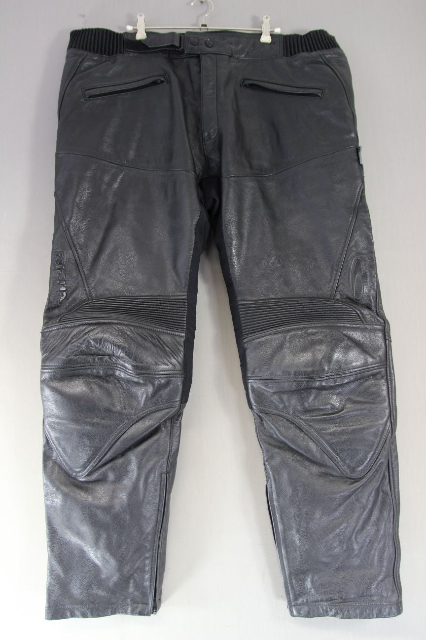 RICHA BLACK LEATHER BIKER TROUSERS: WAIST 42 INCHES/INSIDE LEG 32 INCHES