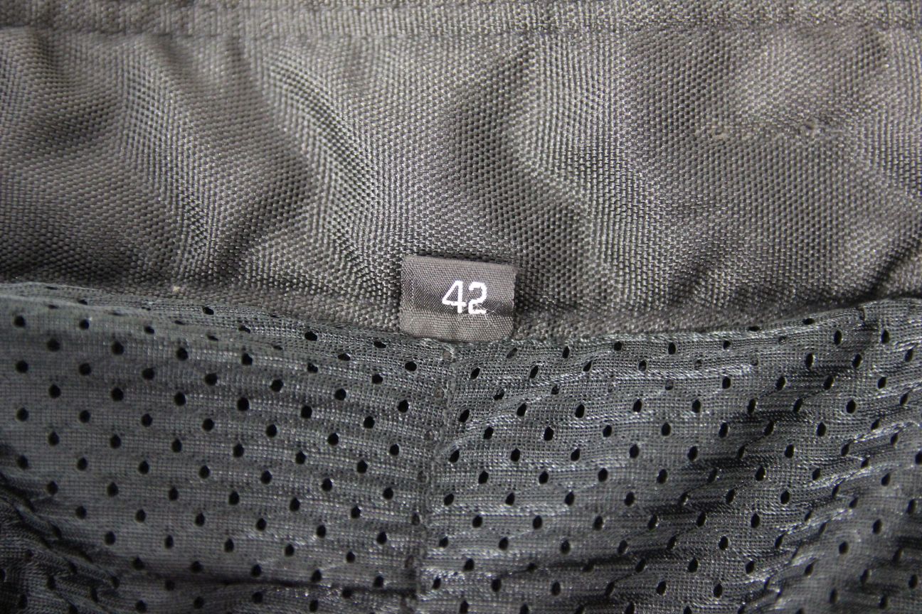 Can be fitted with CE armour (not included) at the knees/shins, held in height adjustable velcro fastened 'pockets' on the lining. There is built in padding at the hips and knees/shins.