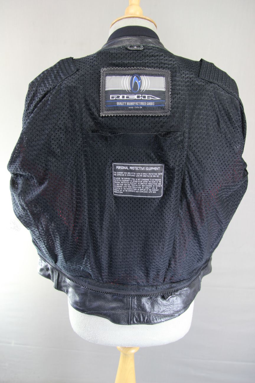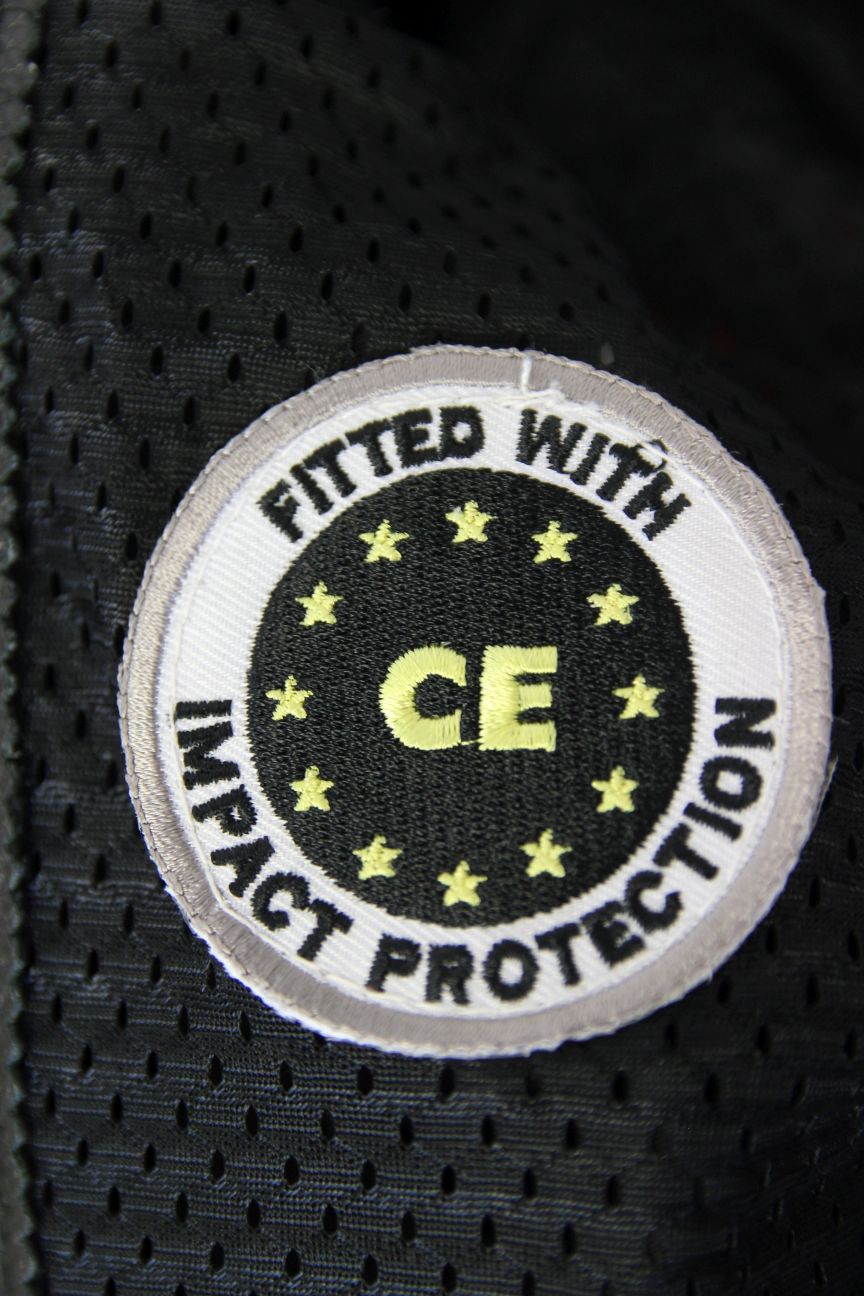 The jacket is fitted with CE armour at the shoulders and elbows/forearms. The shoulder armour is held in velcro fastened 'pockets' on the lining. The elbow/forearm armour is in similar pockets on the inside of the leather (there are velcro fastened openings in the lining to access this). There is also a pocket on the lining for a back protector (not included). There is padding built into the jacket as well.