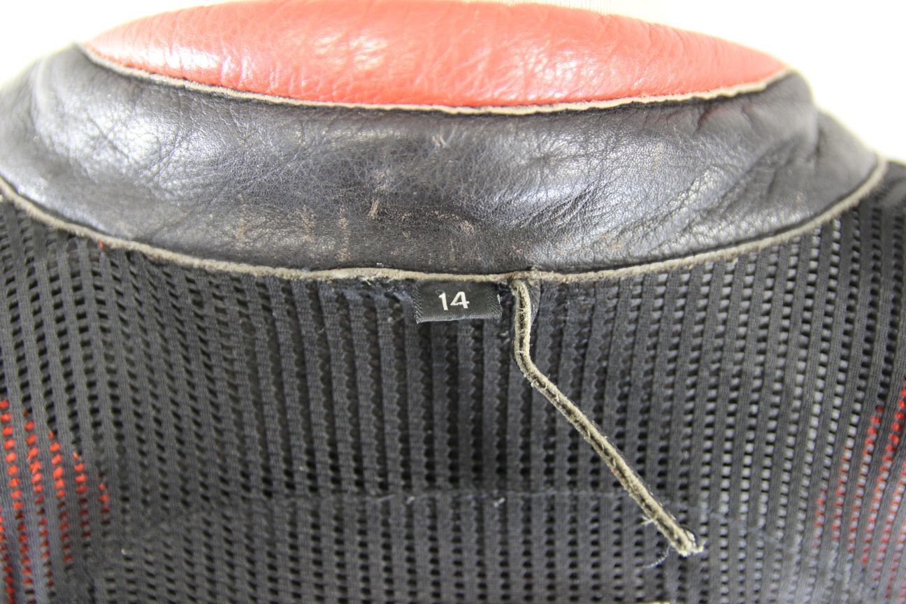 RICHA BLACK, RED & SILVER LEATHER BIKER JACKET WITH REMOVABLE CE ARMOUR: SIZE 14