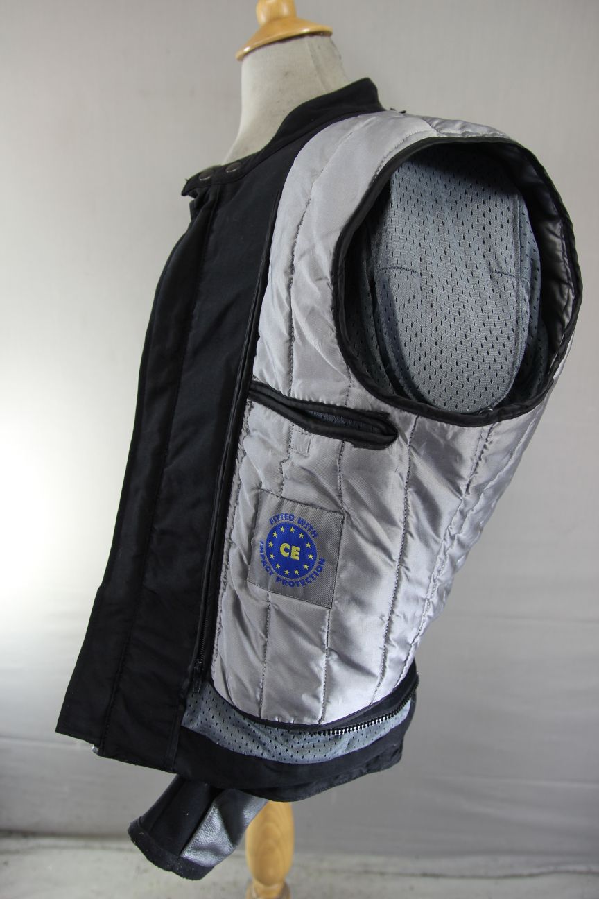 The sleeves are part made from breathable black textile material (label says 96% cow leather/4% nylon).