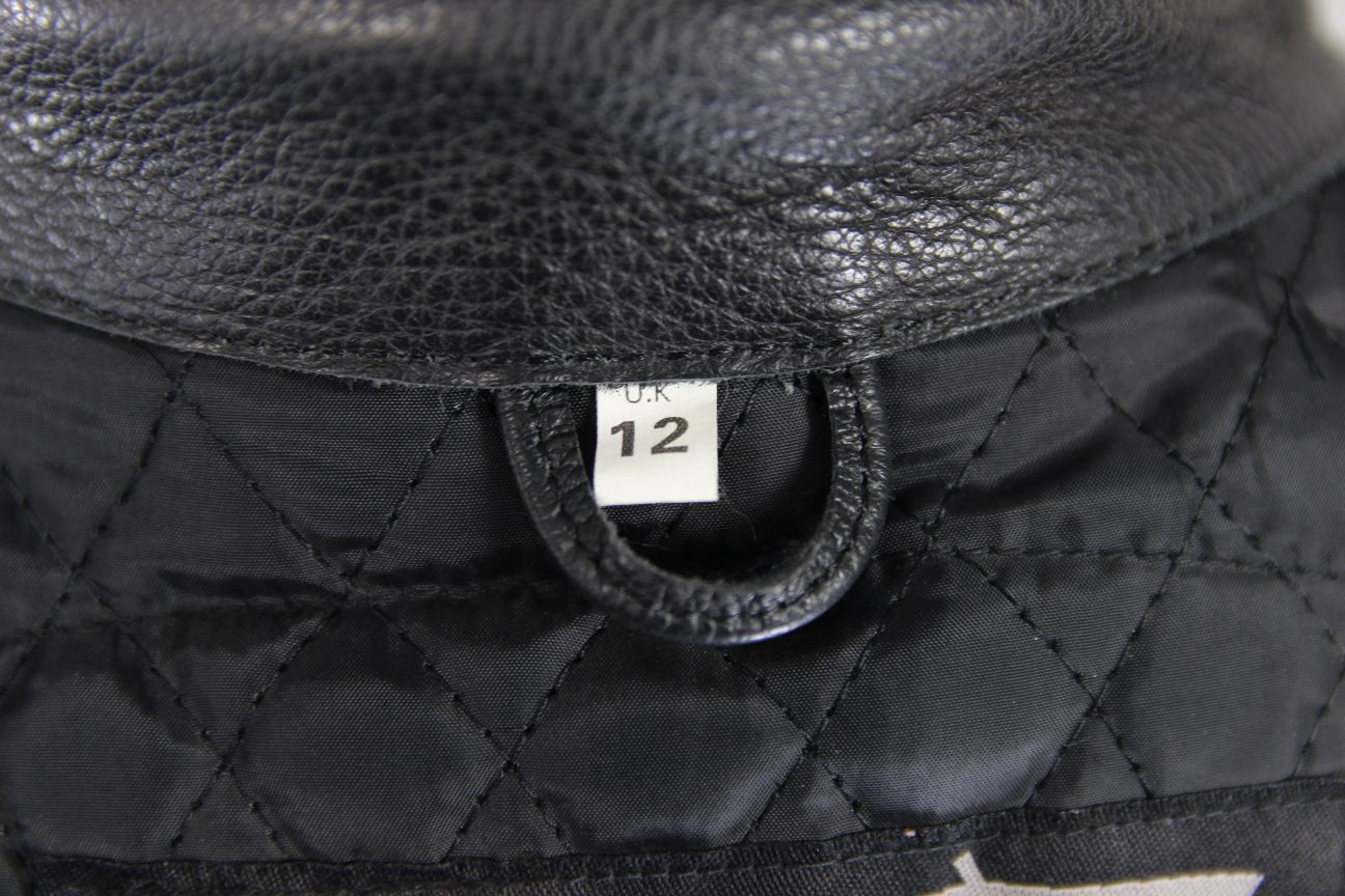 RIDER BLACK, BLUE & SILVER LEATHER BIKER JACKET: SIZE 12/36 INCH CHEST