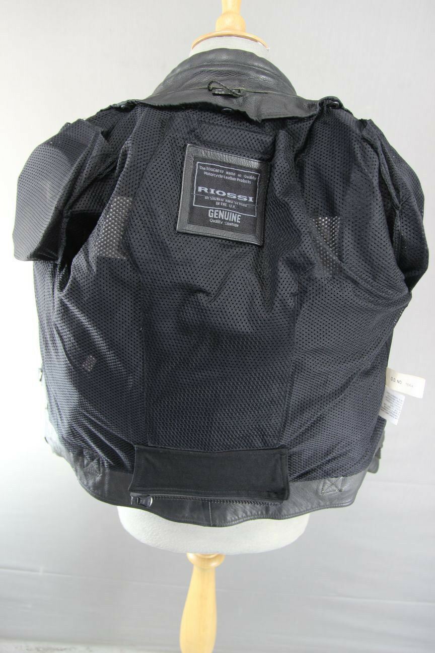 RIOSSI BLACK COWHIDE LEATHER BIKER JACKET WITH REMOVABLE SHOULDER & ELBOW/FOREARM CE ARMOUR