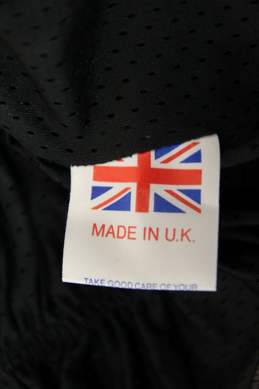 Fitted with removable CE knee armour, extending down the shins, held in velcro fastened 'pockets' on the leather and removable CE hip armour, attached to the inside of the leather with velcro (there is a velcro fastened opening in the lining to access the hip armour). Also supplied with knee sliders, as pictured. There is built in padding at the back of the waist.