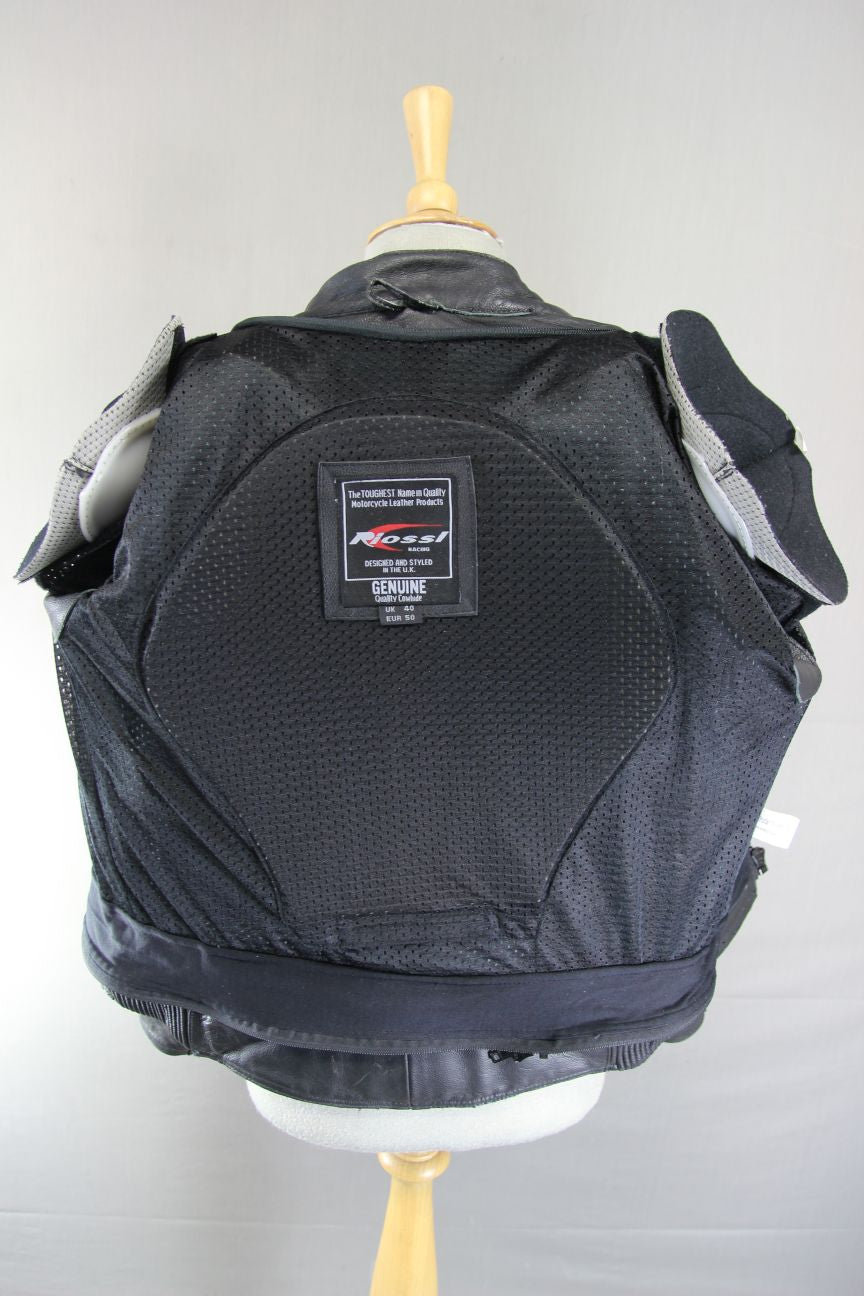 RIOSSI RACING BLACK, WHITE & BLUE COWHIDE LEATHER BIKER JACKET + CE ARMOUR 40 IN