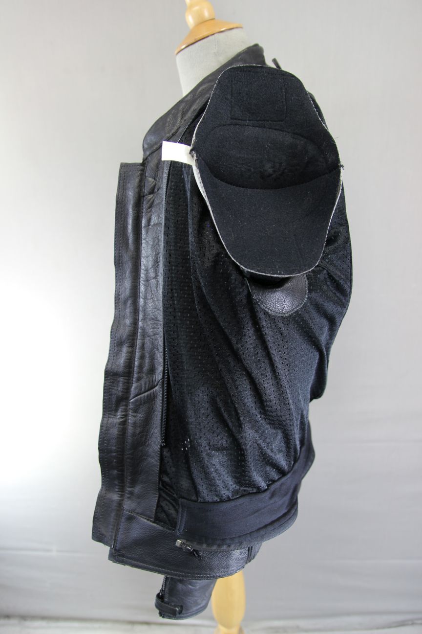 A SUPERB QUALITY LEADING BRAND BRITISH DESIGNED & STYLED BIKER JACKET, MADE FROM TOUGH, HARDWEARING HIDE LEATHER, WITH REMOVABLE SHOULDER AND ELBOW ARMOUR & BACK PROTECTOR.