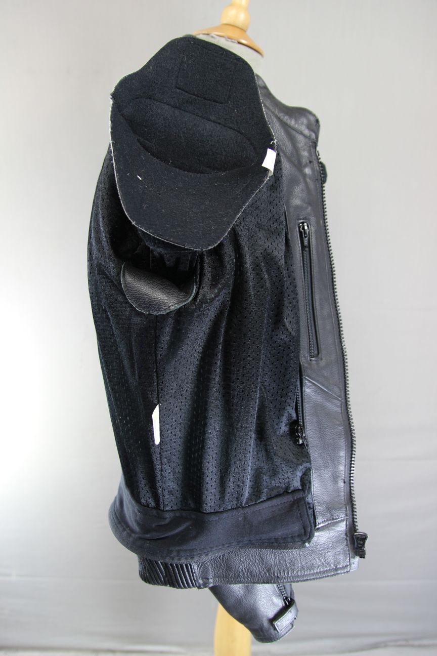 Fitted with elbow/forearm CE armour, held in velcro fastened 'pockets' on the lining & shoulder CE armour, attached to the lining with velcro. The jacket comes with a removable memory foam back protector, also held in a pocket on the lining. There is built in light padding at the shoulders and back of the waist.