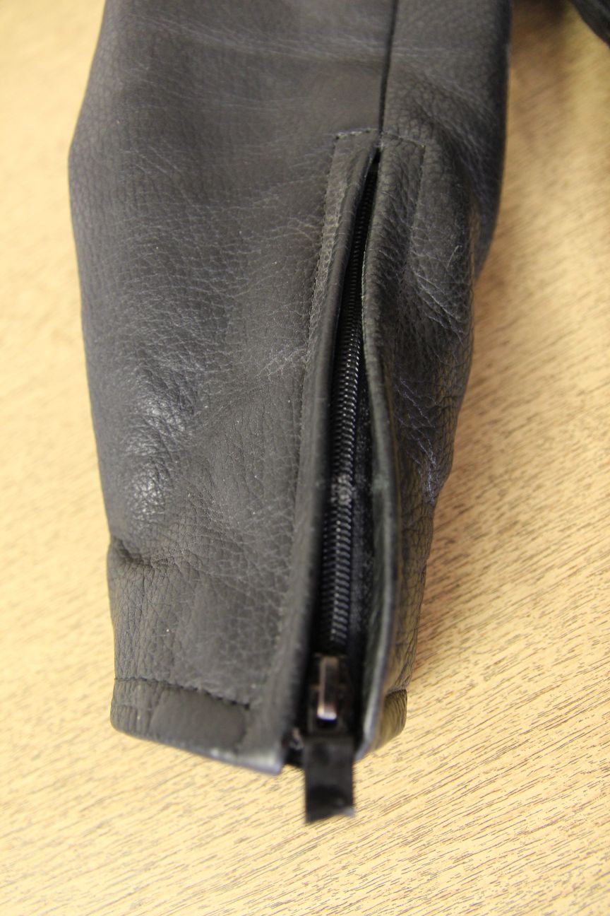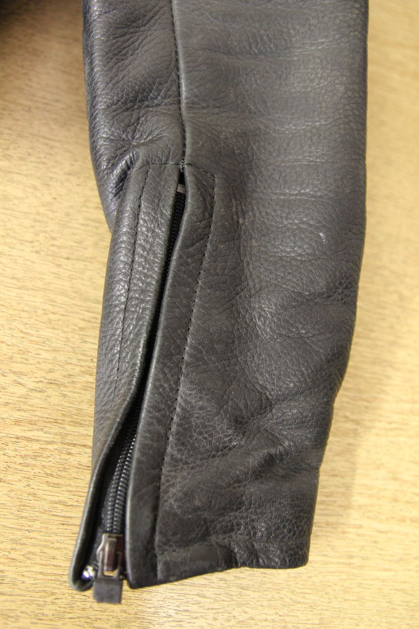 A SUPERB QUALITY LEADING BRITISH BRAND BLACK LEATHER BIKER JACKET WITH CE ARMOUR.