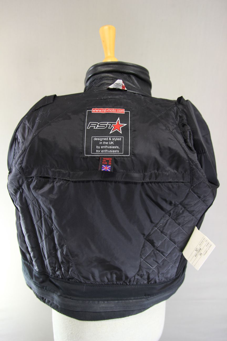 RST BLACK LEATHER BIKER JACKET + REMOVABLE SHOULDER & ELBOW KNOX CE ARMOUR SZ 10