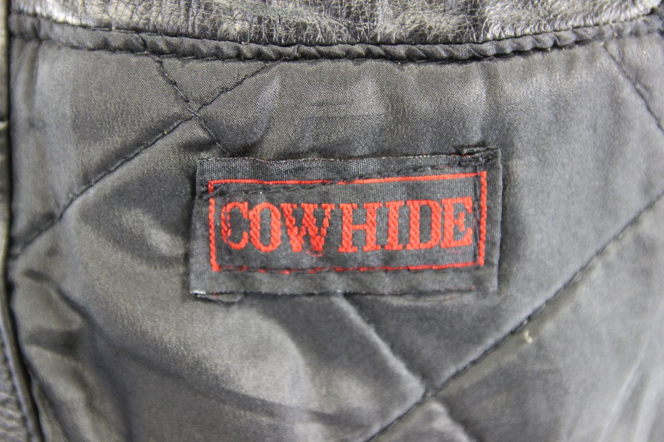 A SUPERB QUALITY BLACK BIKER JACKET, MADE FROM TOUGH, HARDWEARING HIDE LEATHER.
