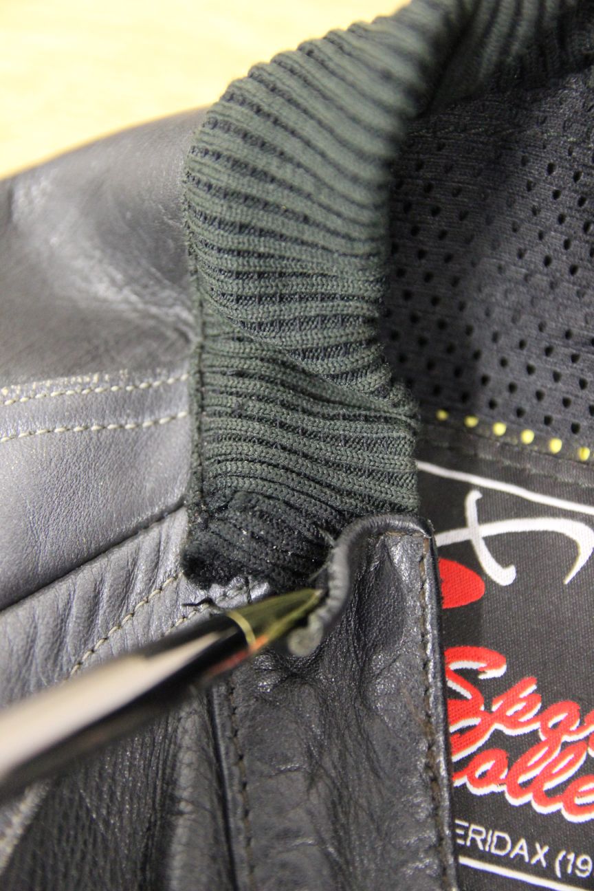 This jacket has had quite a lot of wear but it's still in good overall condition. There are a few stitches missing along the seam where the leather meets the textile material on the collar, please see close-up photo.