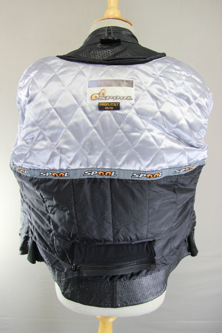 SPOOL BLACK LEATHER BIKER JACKET WITH CE ARMOUR & QUILTED THERMAL LINING SIZE 12
