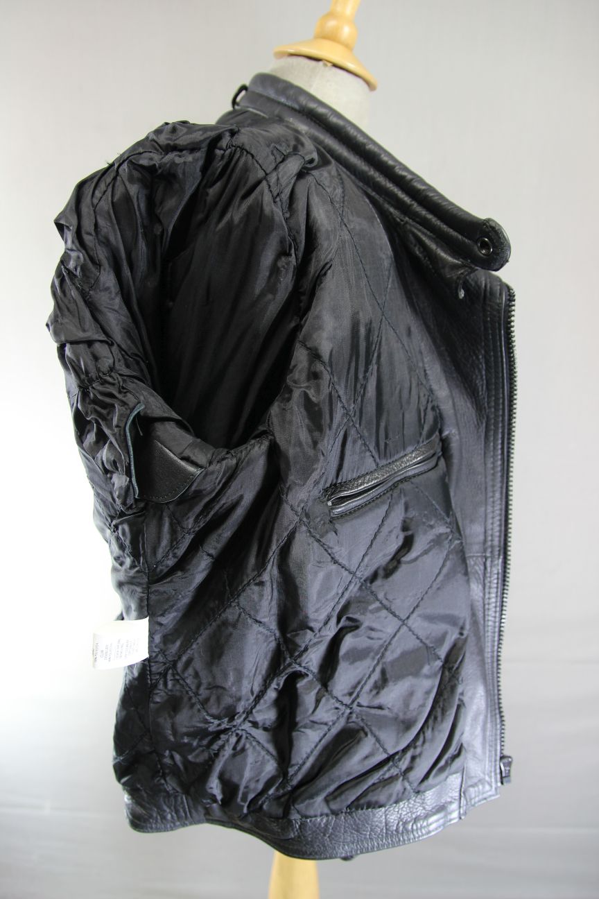 The jacket has a quilted black lining.