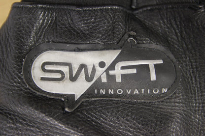 SWIFT INNOVATION BLACK LEATHER BIKER TROUSERS WITH REMOVABLE KNEE/SHIN PROTECTORS