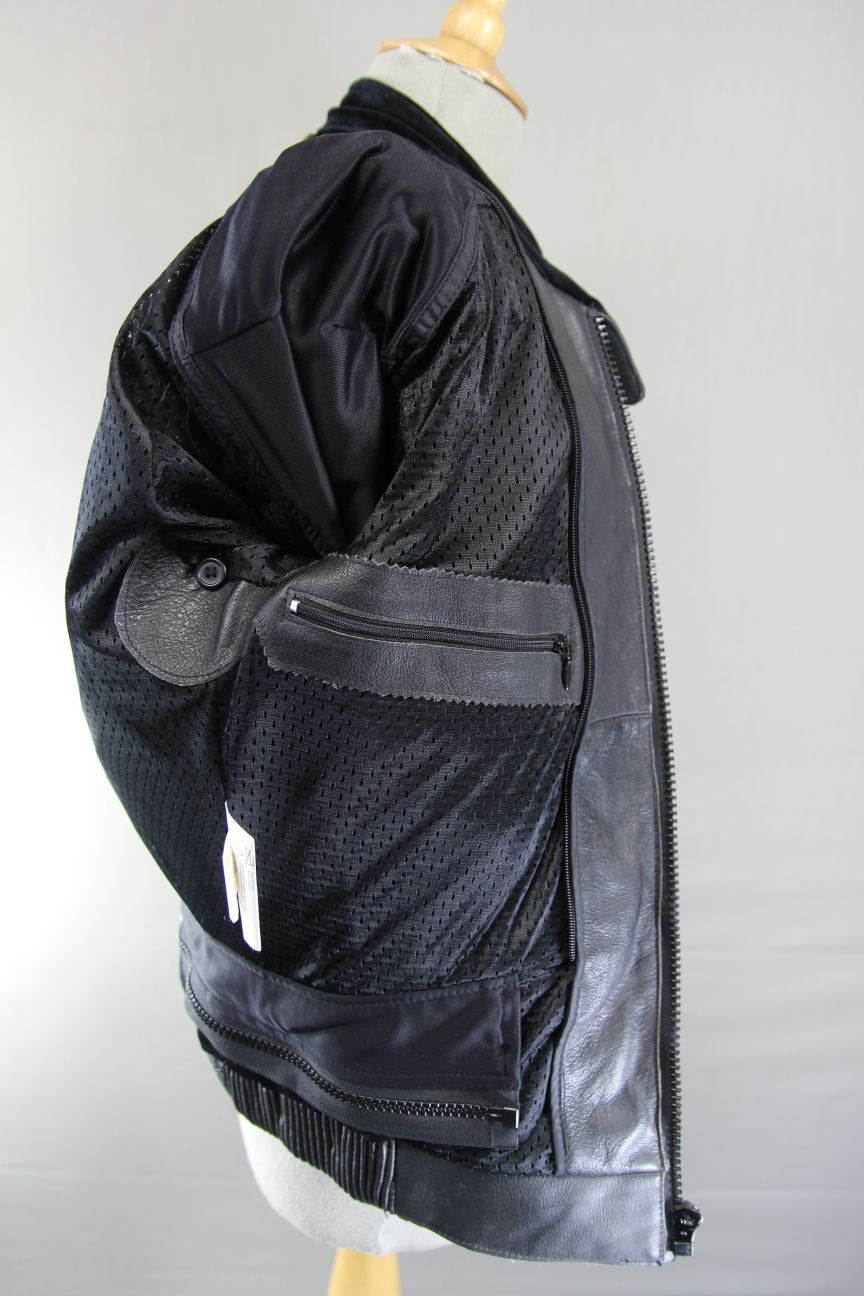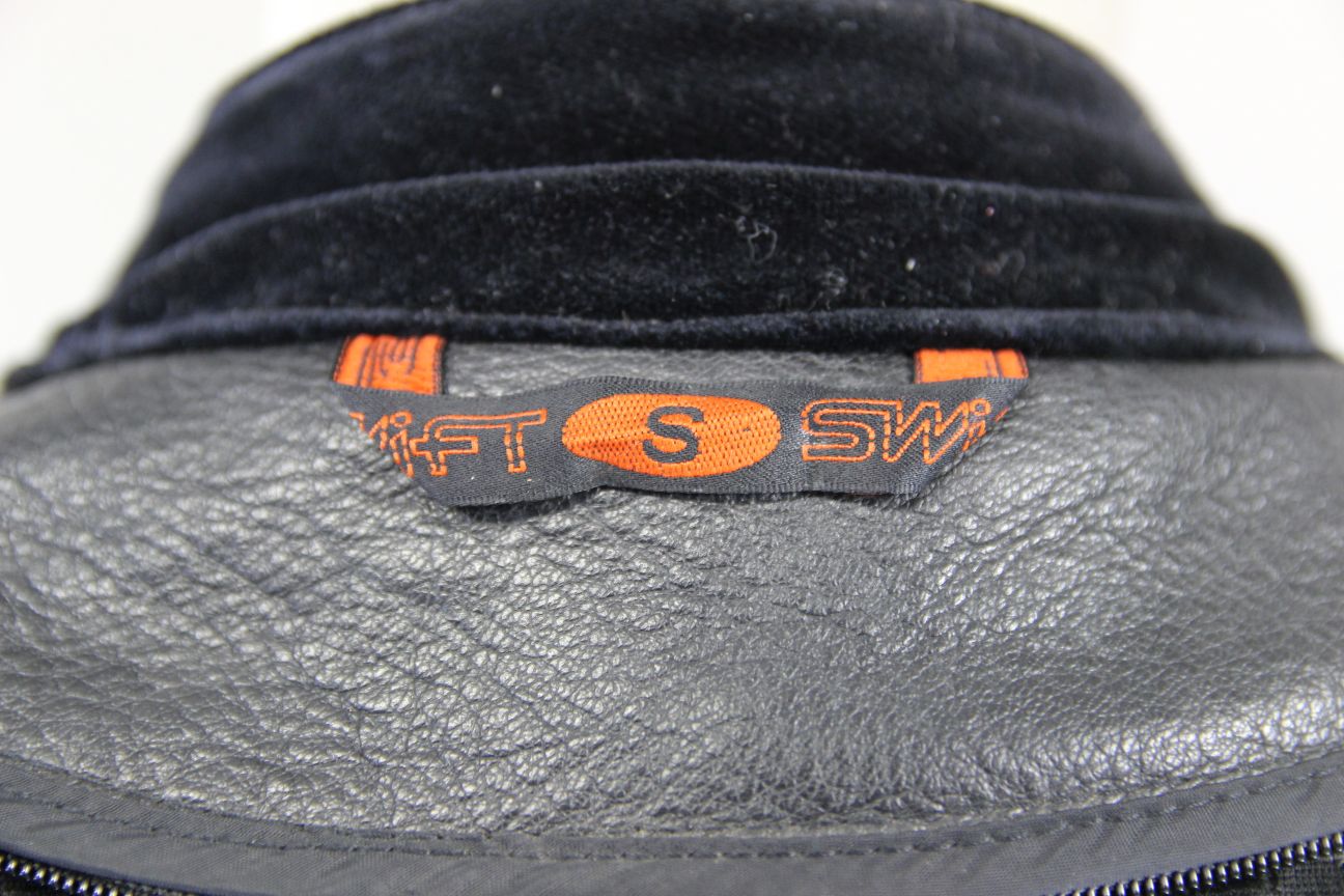 SWIFT INNOVATION BLACK, ORANGE & WHITE LEATHER BIKER JACKET 36 INCH/SMALL
