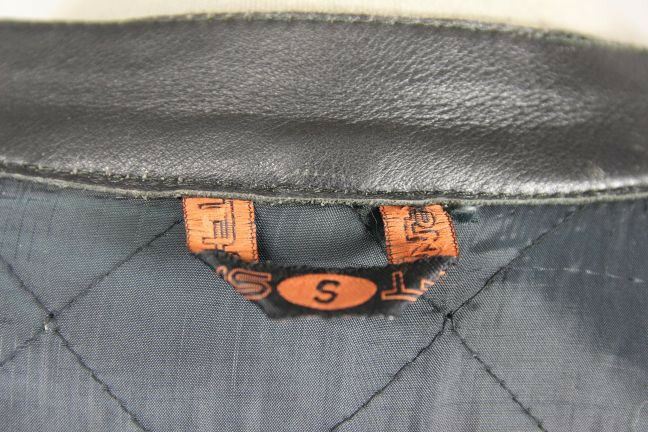 There are 2 slanted zipped pockets at the waist, another small zipped pocket on the chest on the left and a leather trimmed inside pocket.