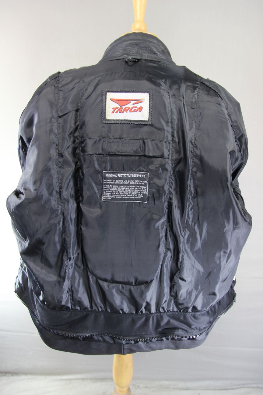 TARGA BLACK LEATHER BIKER JACKET WITH REMOVABLE CE BACK PROTECTOR 52-54 INCH