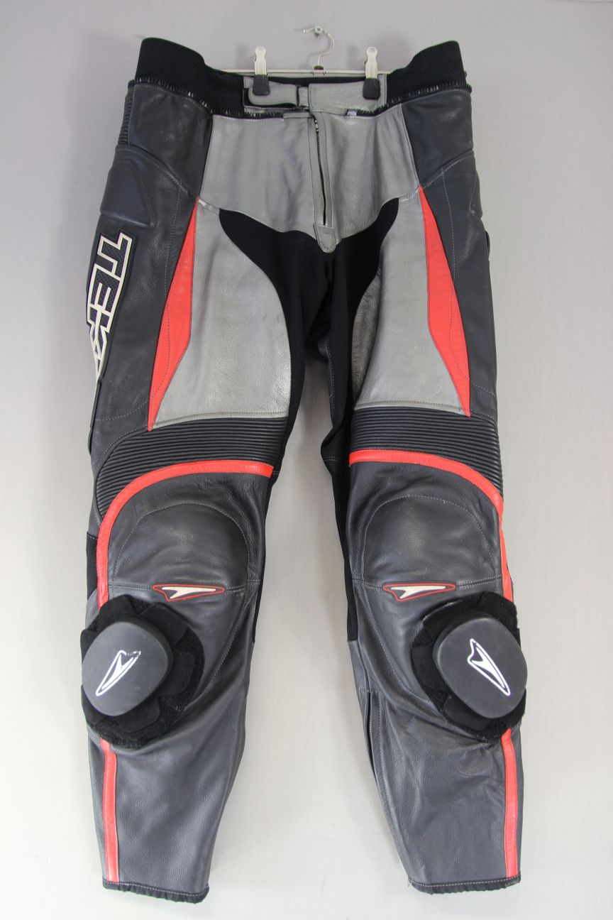 TEKNIC LEATHER BIKER TROUSERS + ARMOUR/KNEE SLIDERS: WAIST 36-38"/INSIDE LEG 31"
