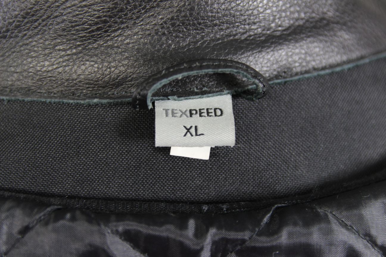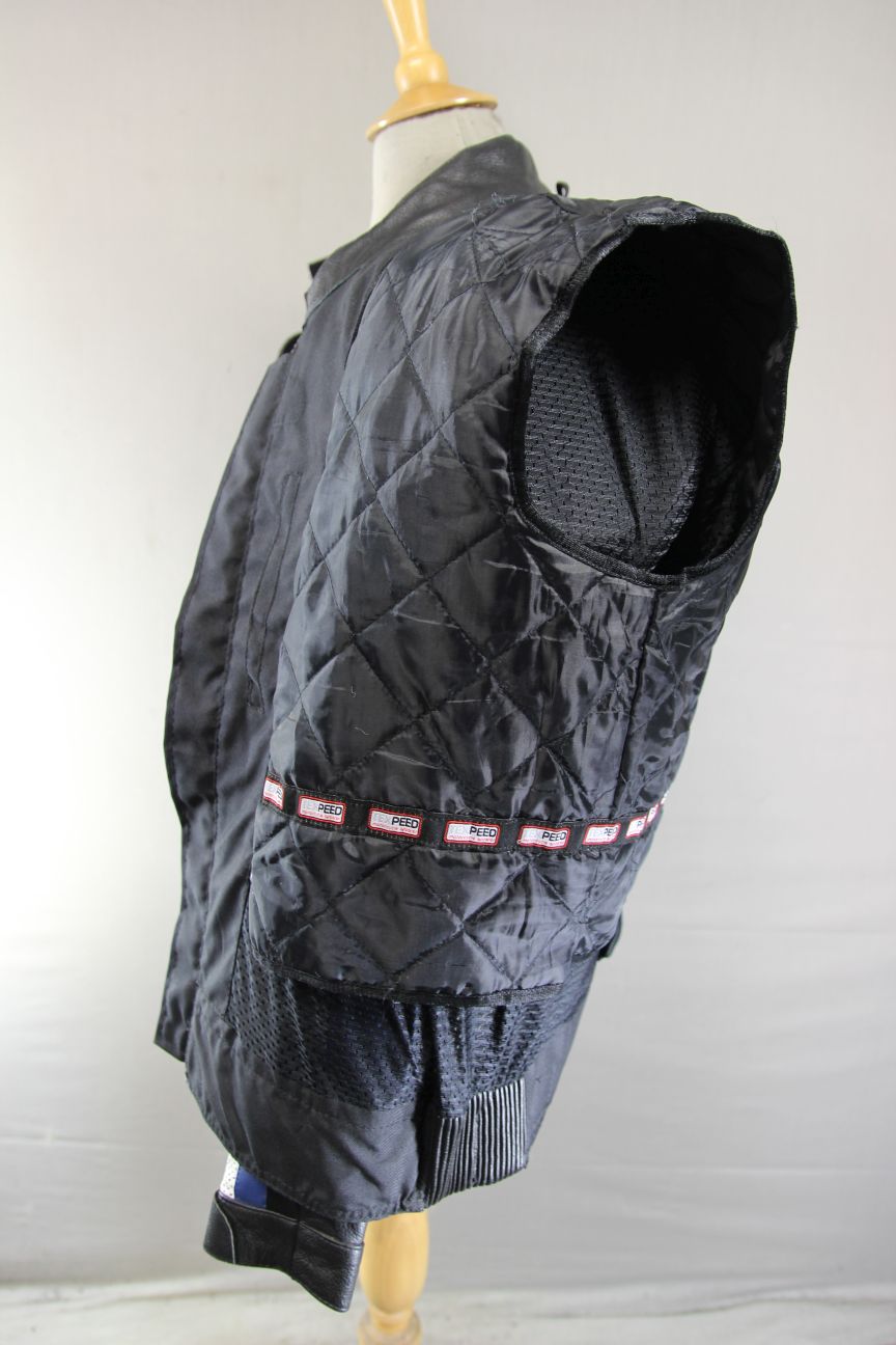 TEXPEED BLACK, BLUE & WHITE LEATHER BIKER JACKET + ARMOUR/THERMAL LINING 44 INCH