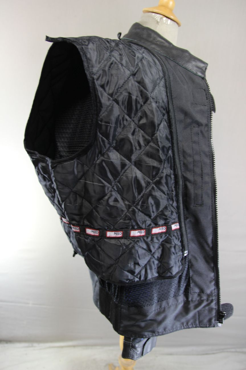 Great for all year round wear - there is a zipped air vent at the front of each shoulder, some of the leather is perforated for ventilation and there is a breathable black textile material on the underside of the sleeves. The black nylon mesh lining is also breathable. Comes with a zip in additional quilted black lining for cold weather use.
