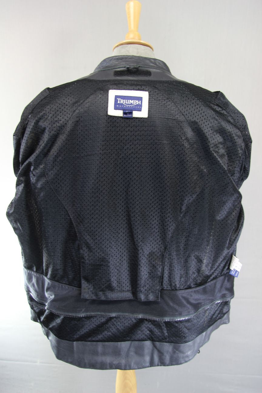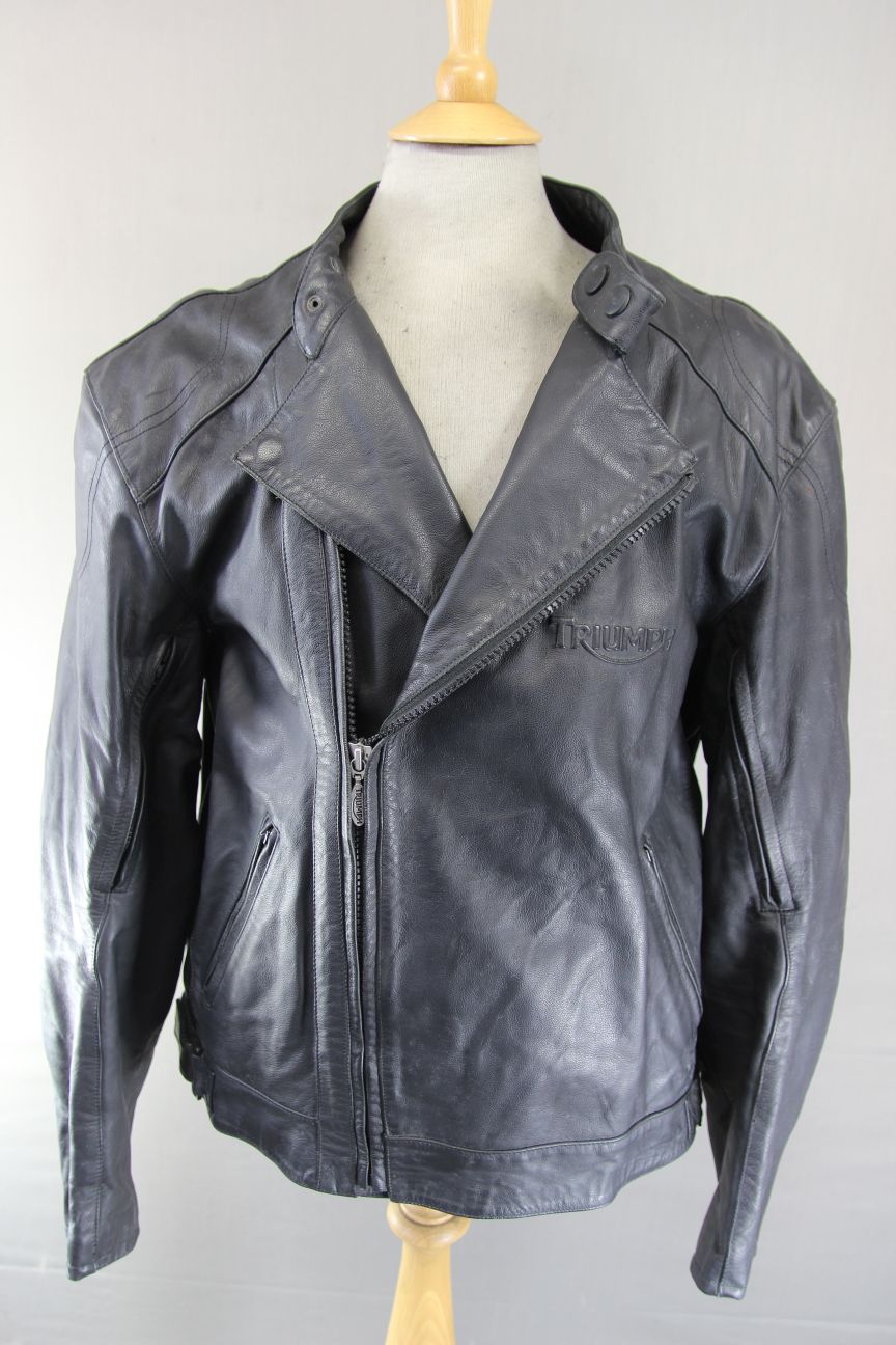 TRIUMPH RETRO 1970S PUNK ROCK BLACK LEATHER BIKER JACKET WITH CE ARMOUR 46 IN/XL