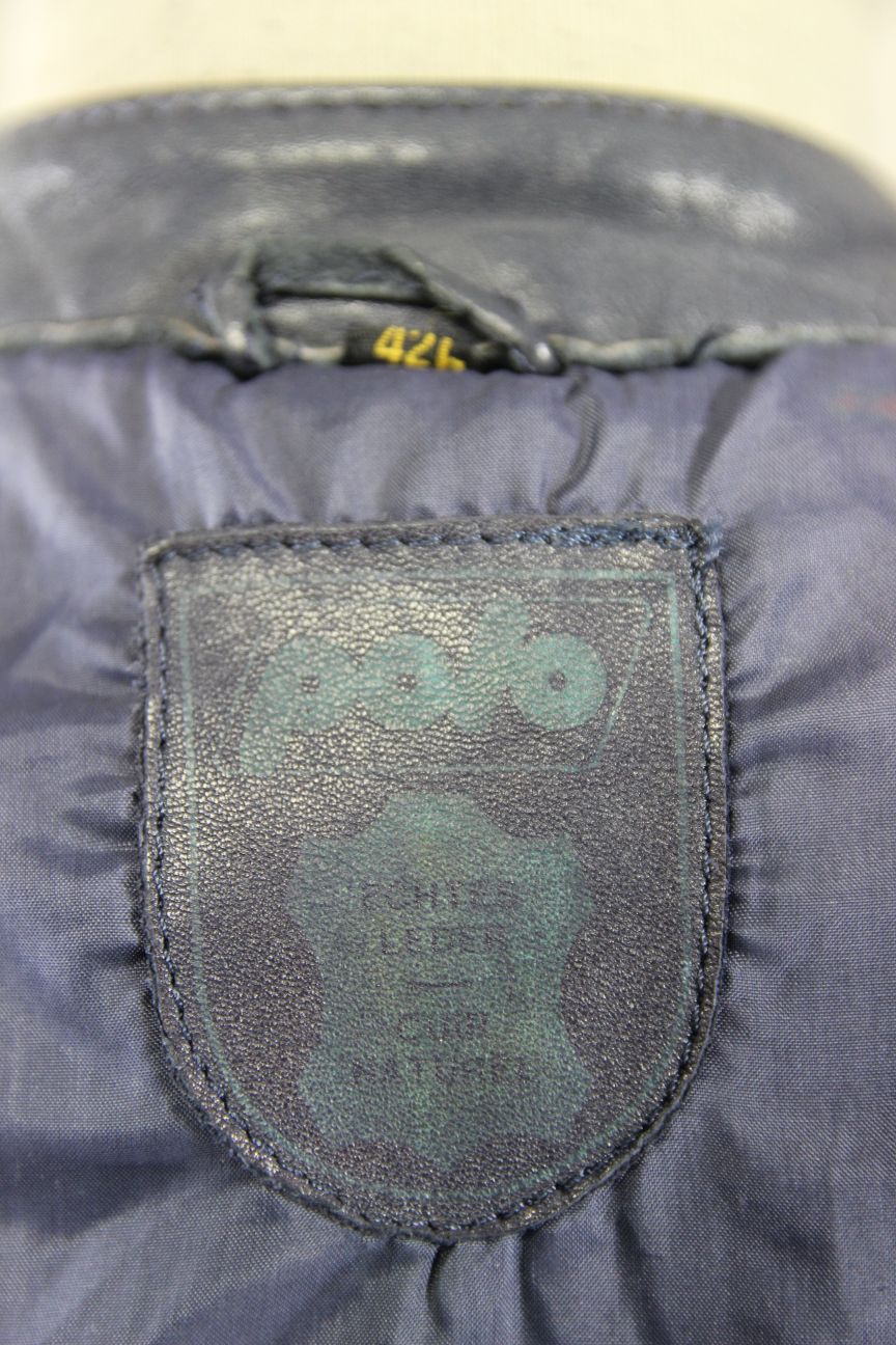 A SUPERB QUALITY DARK BLUE LEATHER BIKER JACKET IN VINTAGE 70's STYLE, WITH FOLD DOWN COLLAR & QUILTED PADDING.
